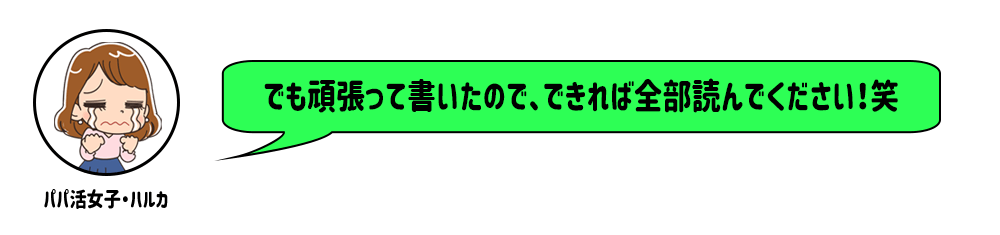 パパたちは文面から人柄を想像して、一緒にいて楽しそうな女の子を探しているので、文章で好感度とどんな子なんだろう~と想像できる余白を散りばめてあげられるとGOODです!